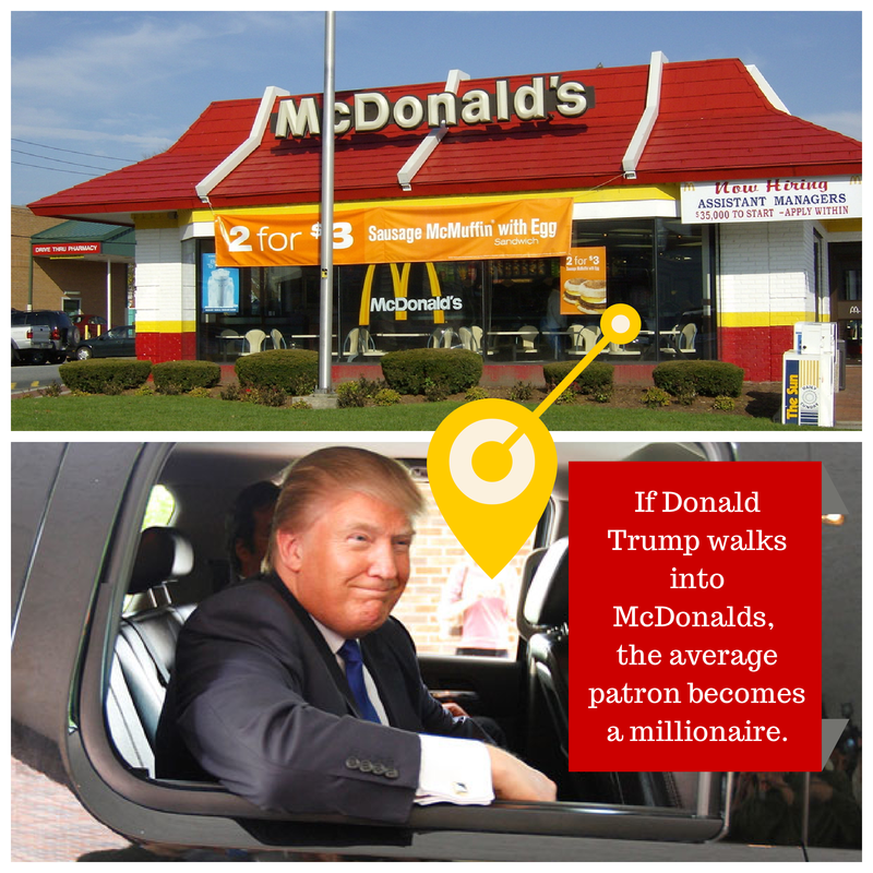 When Donald Trump walks into a McDonalds, the average patron in that restaurant becomes a millionaire. Is this true? With a few calculations and assumptions, we can find out.
